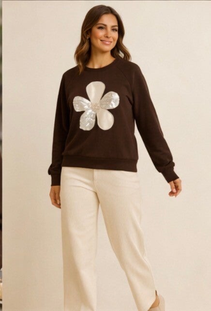 Divine Sequin Flower Sweatshirt – Chocolate