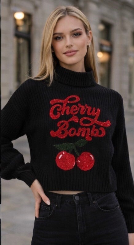 Bright, playful, and irresistibly chic — the Cherry Bomb Cozy Knit Sweater is the perfect statement piece for adding personality to your everyday style.