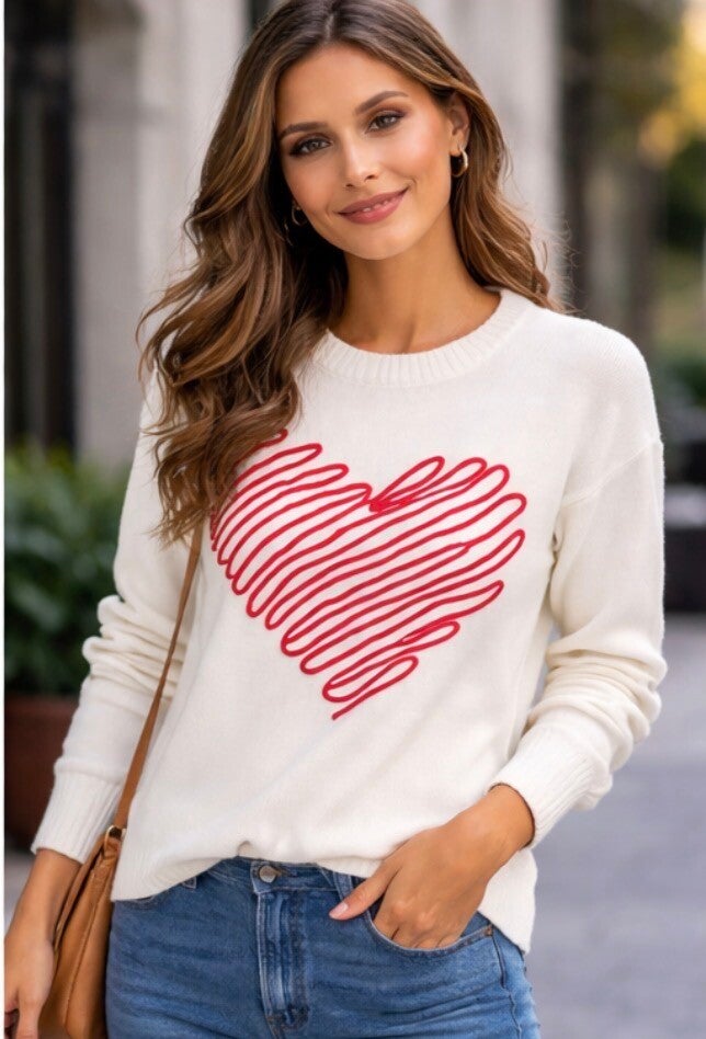 Our Cream Heart Knit Sweater is the perfect blend of comfort and charm. Featuring a soft cream knit base and a bold red heart design, this piece adds a sweet but stylish touch to your everyday looks.