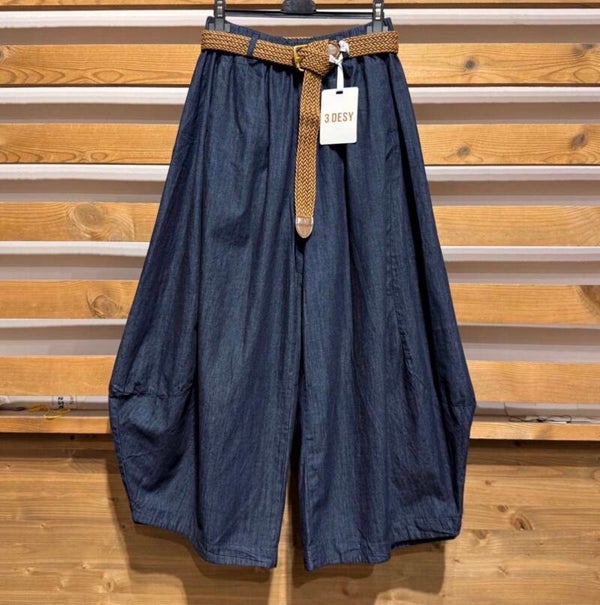 Effortlessly chic and ultra-comfortable, these flowy wide-leg pants are the perfect blend of relaxed elegance and modern style. Designed with a soft denim fabric and an adjustable woven belt, they create a flattering silhouette that moves beautifully with every step.