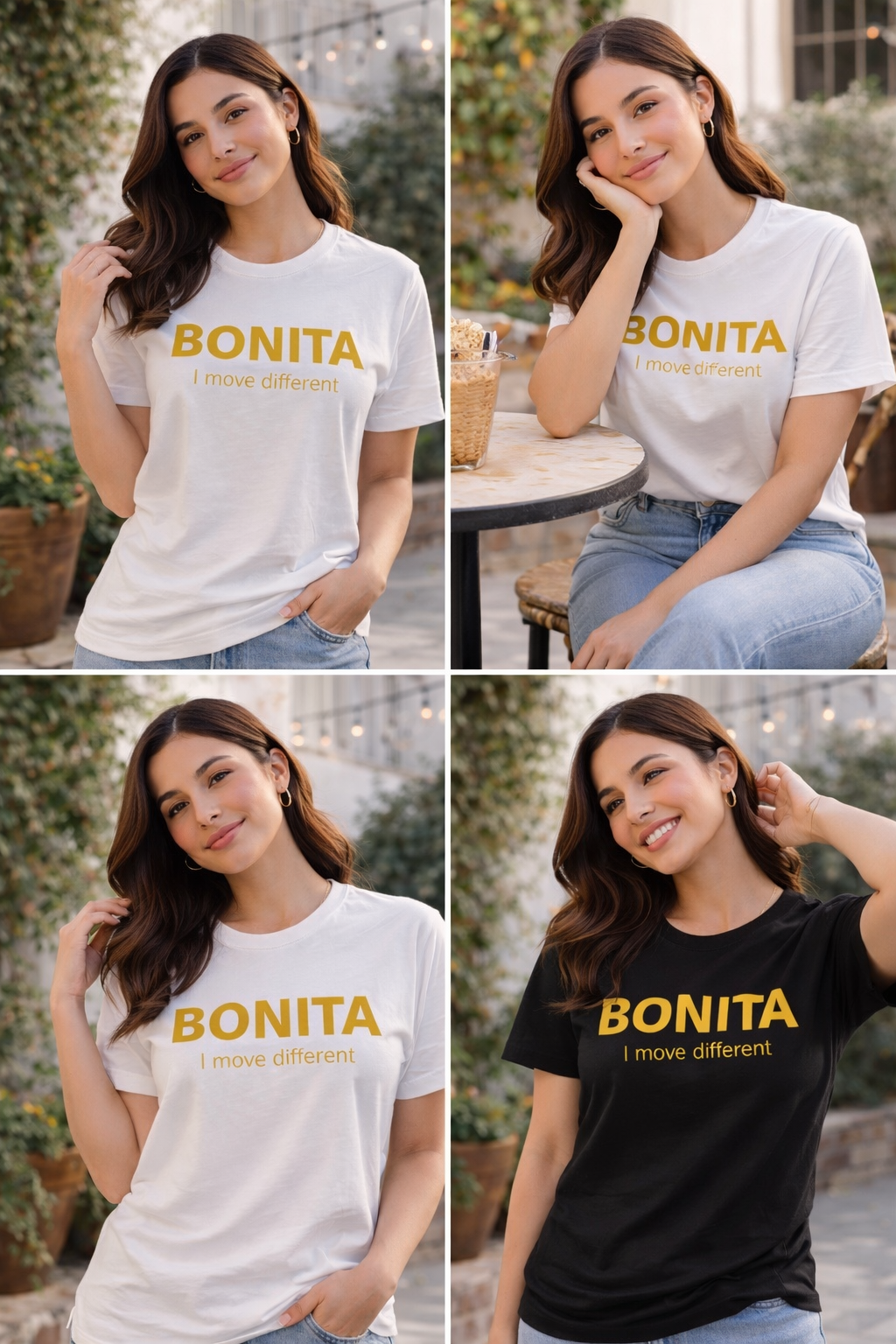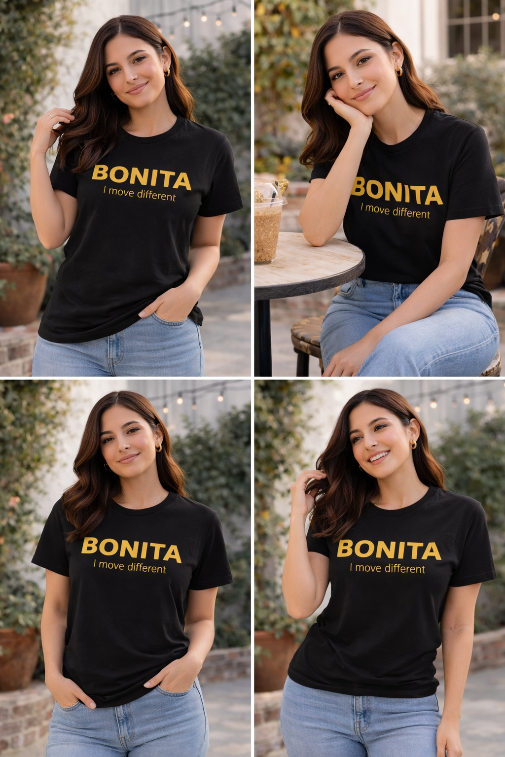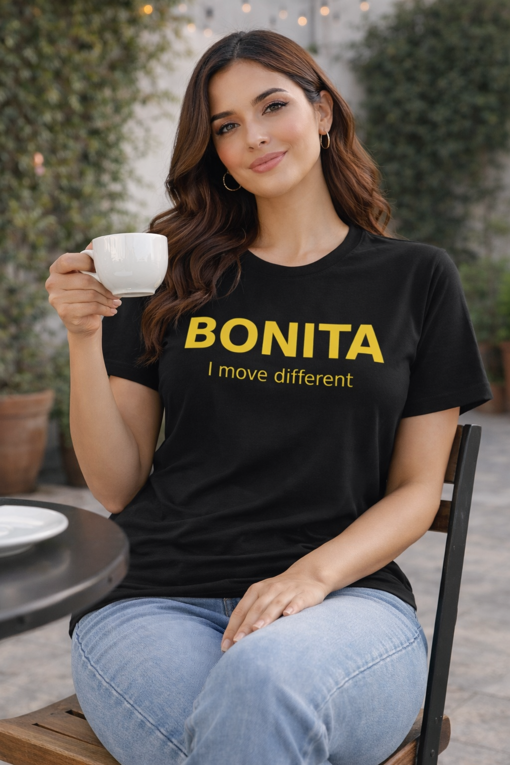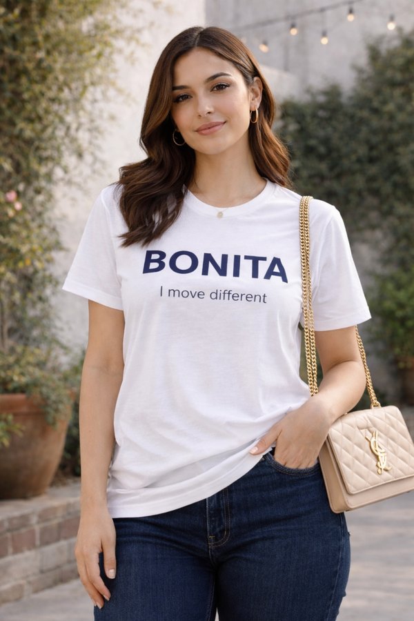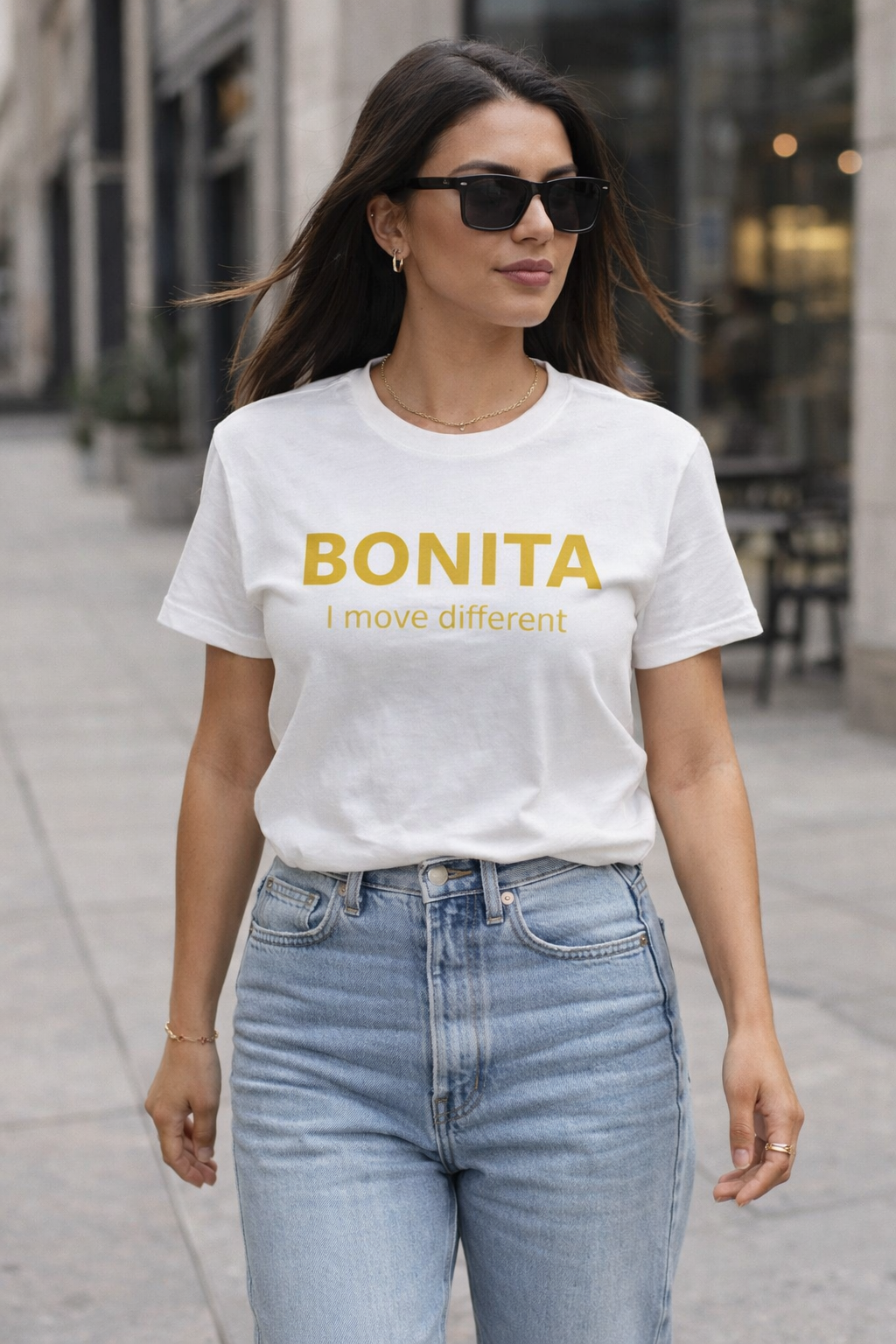 BONITA “I Move Different” T-Shirt – Minimal Chic Graphic Tee for Women